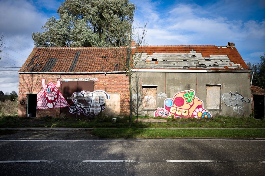 Le village flamand de Doel (prononcez 'Doul') comptait près de 1500 habitants au début des années 60. Les premiers ont commencés à déserter le village dès les années 1970 suite à la construction de la centrale nucléaire toute proche. Aujourd'hui, il n'abrite plus qu'une petite trentaine d'habitants.